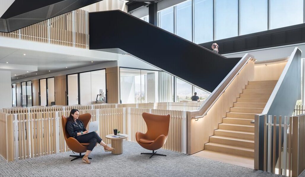 We’re so proud to see this SC Workplace featured in Interior Design Magazine! This one-of-a-kind tenant improvement translates the client’s value for ‘connection’ and ‘egalitarian premises’ into a physical reality through a number of structural design solutions. And we couldn’t be more thrilled to see the results! A major intention of the design was to open up the office space and minimize structural elements. Specifically in the stairways, we looked to lessen vertical supports, utilizing horizontal trusses and vertical steel plates to engineer these hairpin turn stairways. And the spiral stairs use vertical steel plate stringers assisting built-up, spiral, steel box stringers. In other words, it’s a giant spring! Congratulations to the project team, including Behnisch Architekten and DPR Construction on the completion of this project!